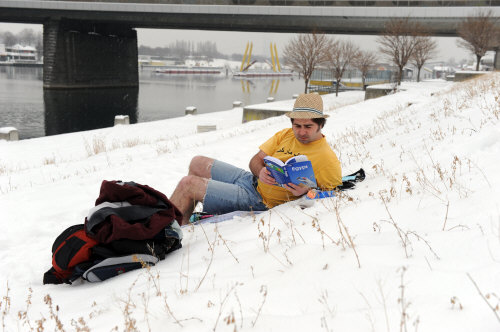 Das Schöne am Sonnenbaden an der Copa Cagrana im Winter: Man hat weitgehend seine Ruhe. Wo sind denn eigentlich alle anderen?